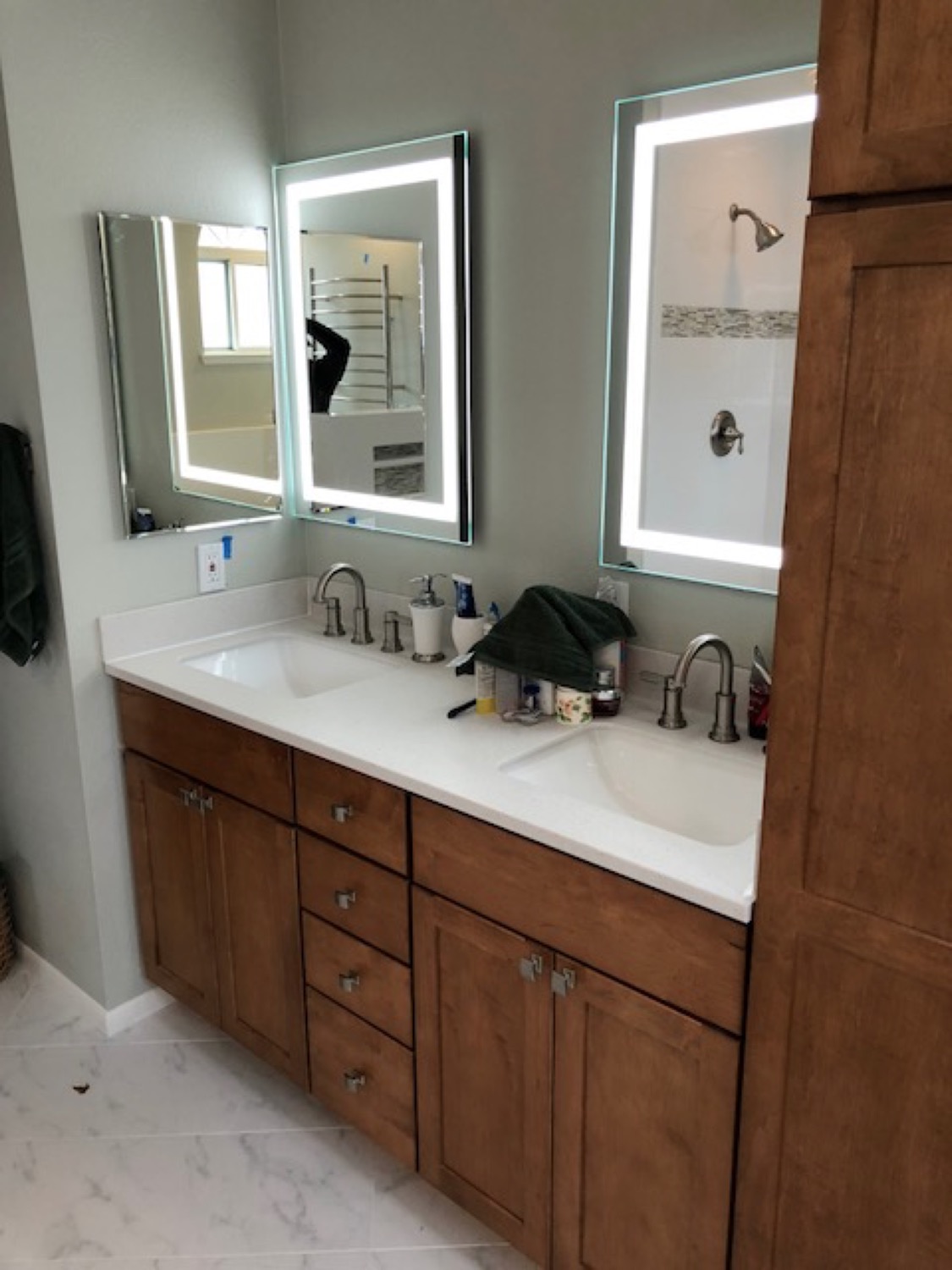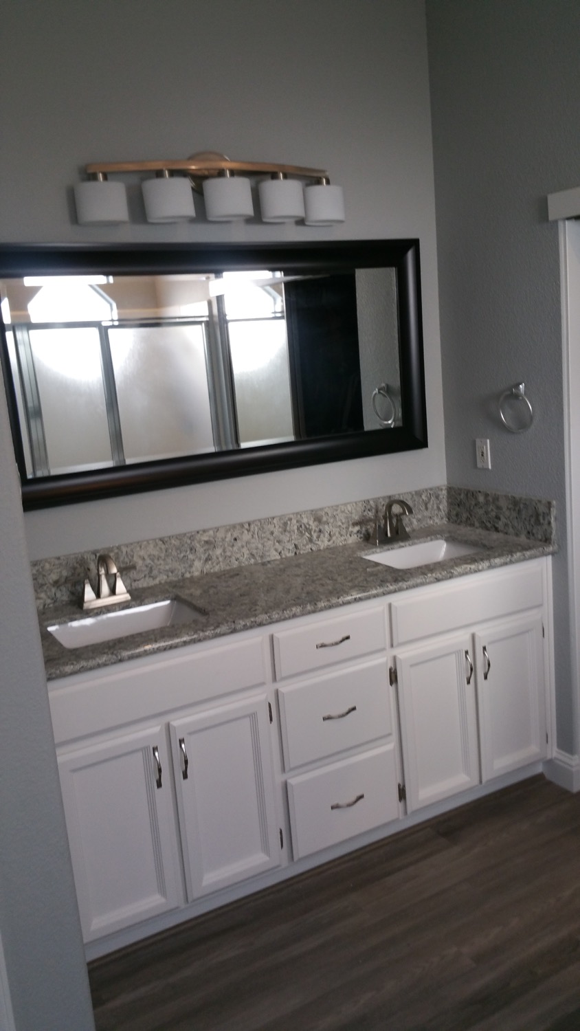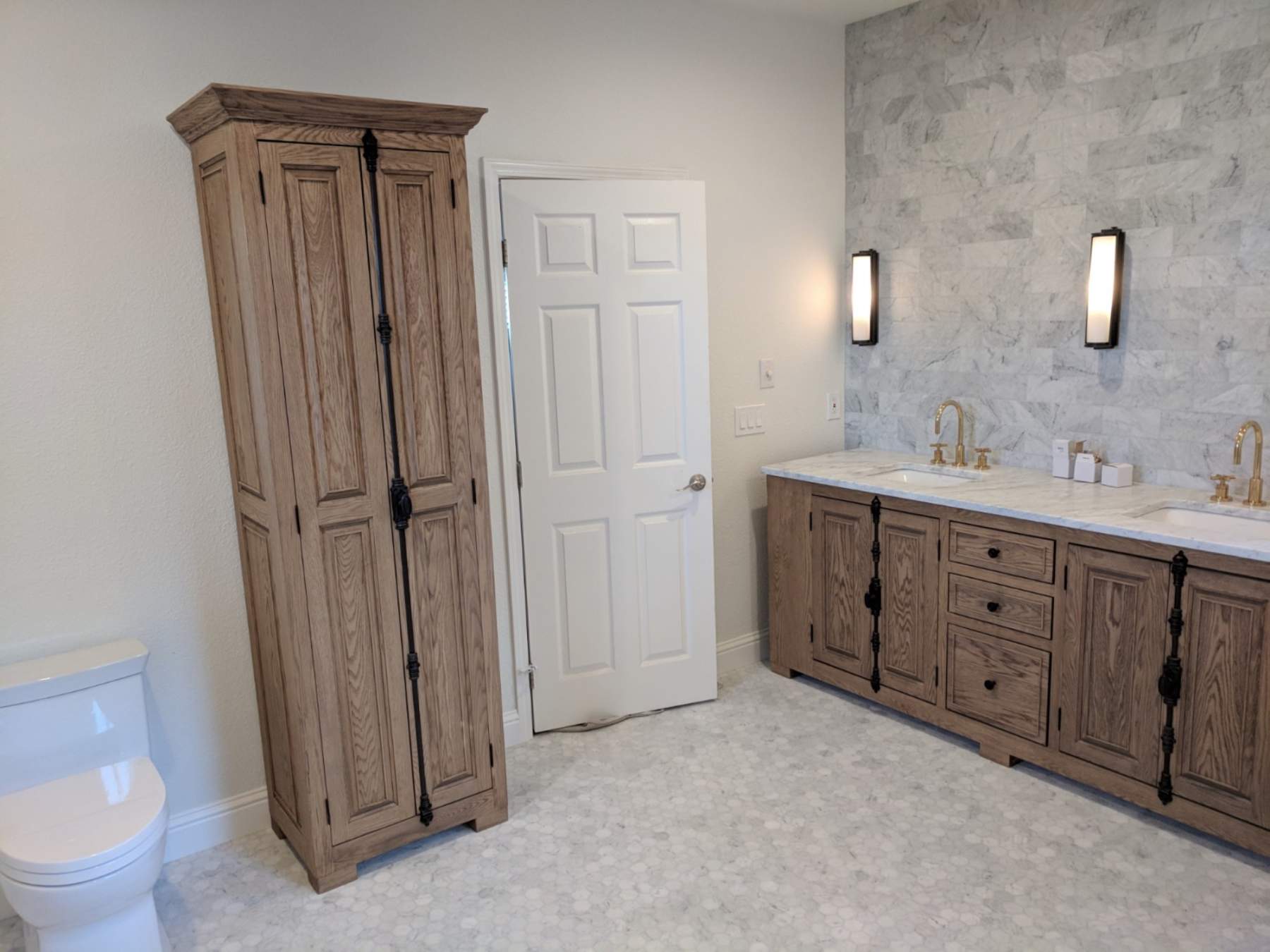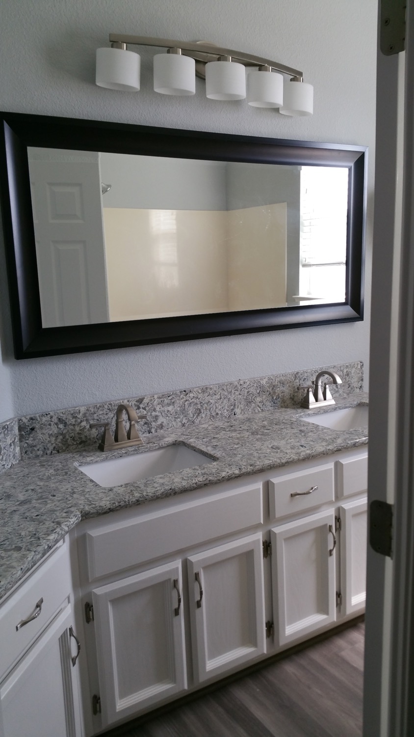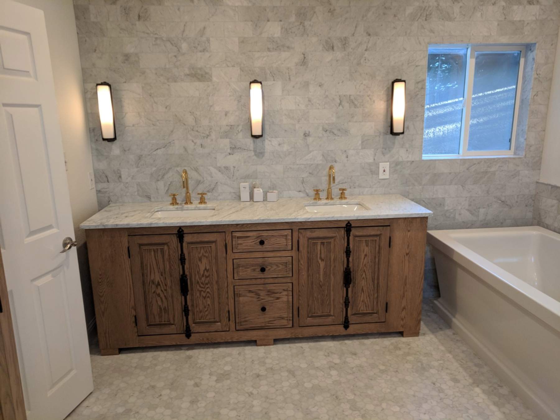 We’ll inspect your bathrooms and come up with the perfect new design that interests you. You can choose everything that will make a remarkable difference such as new countertops with all sorts of options such as granite, marble, and quartz. The flooring can be completely redone with so many beautiful options to pick from. You can have lovely glass-enclosed showers or even go for a stylish-looking tub that you’ll enjoy soaking in. The showers can be customized with shampoo niches and benches for the perfect showering experience every time! Basically, whatever you can dream up for a beautiful new bathroom design, we can make it happen for you! Make sure to check out our gallery section to see some of the beautiful bathrooms remodels we have done in the past.